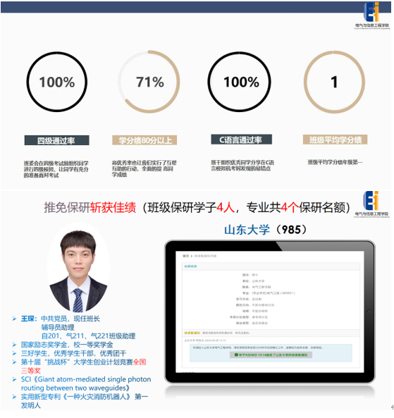 三年来,在台湾av影片领导的关心关怀下,在辅导员、班主任及全体同学的努力下,气191班将党建+团建落实、专业+创新落细、爱心+耐心落地,打造了一个有引领力、影响力、创造力的集体。班级3次获得校先进班级荣誉称号,团支部多次获得“五四红旗团支部”、“活力团支部”荣誉称号。班级同学提交入党申请书100%,拥有10名党员,占比25%,为台湾av影片班级中最高。班级同学发表SCI论文两篇,其中1篇为SCI二区TOP,申请专利5项,在科技竞赛共获国家级奖项3项,省级奖项11项,班级同学主持国创项目2项,省创项目8项。班级四级通过率100%,C语言省二级通过率100%,今年,专业推免名额共4个,4个名额全部花落该班。
