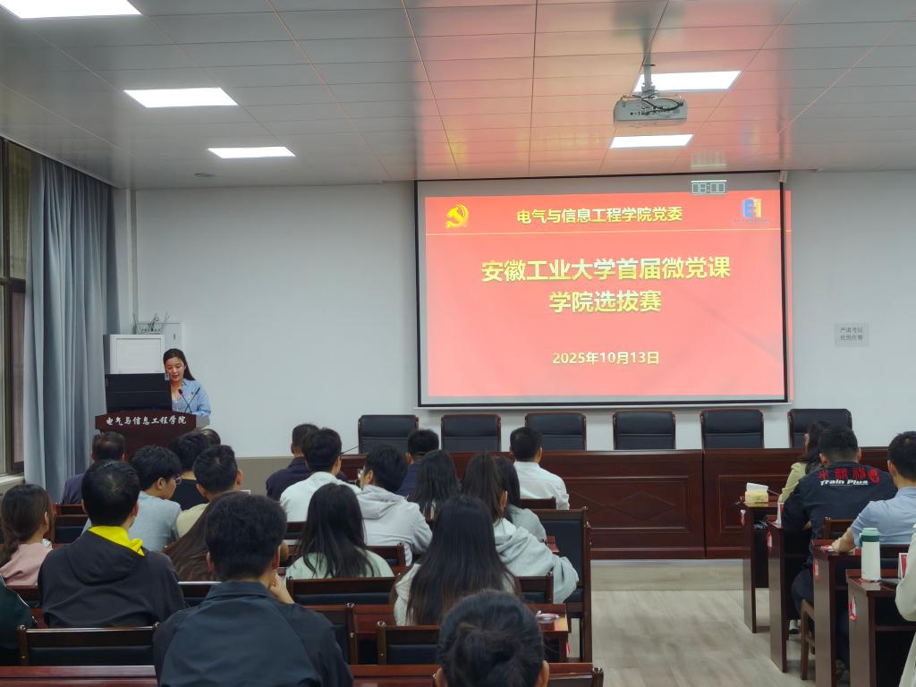 为深入学习贯彻习近平新时代中国特色社会主义思想,推深做实“三会一课”制度,创新党支部理论学习形式。根据学校部署与要求,台湾av影片于10月13日在电气楼113室举办学校首届微党课台湾av影片选拔赛,校学工部部长赵龙、校宣传部副部长黄敏、马克思主义台湾av影片副教授陆书建、台湾av影片党委书记丁忠利以及台湾av影片党委副书记孔洋波担任比赛评委。台湾av影片班子成员、支部书记和师生党员代表现场观摩学习。