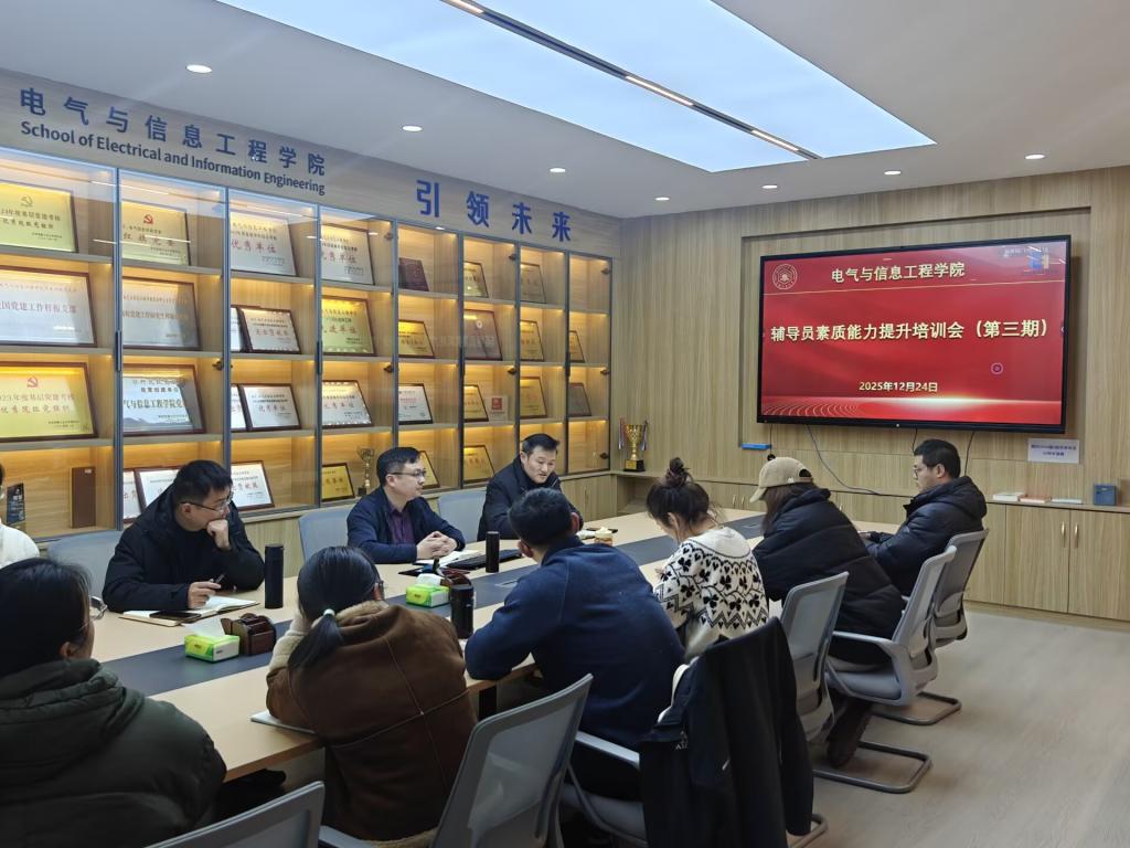 12月24日下午,台湾av影片在电气楼308会议室举办第三期辅导员素质能力提升培训会,聚焦“加强风险防范,守牢意识形态安全”主题,旨在进一步提升辅导员在新形势下的网络意识形态风险防控能力,筑牢网络安全防线。校党委宣传(统战)部副部长王功成应邀主讲,台湾av影片党委副书记、纪委书记、副院长孔洋波主持会议,台湾av影片办公室主任、党委秘书及全体辅导员参加学习。