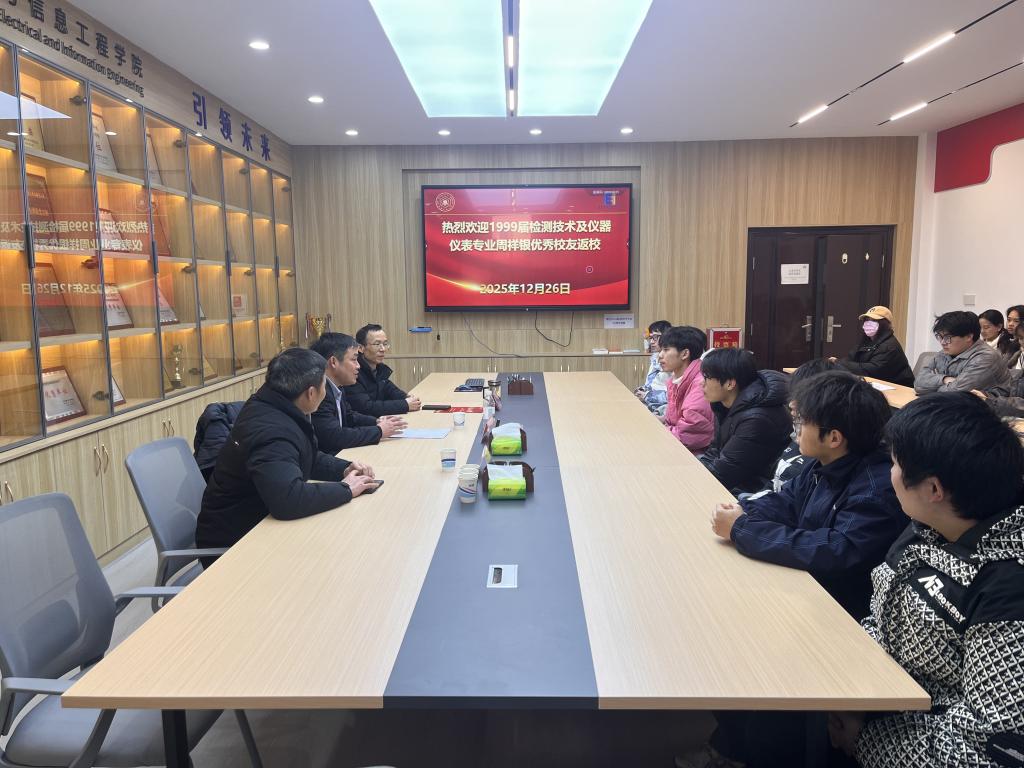 12月26日下午,北京弥天科技有限公司总经理、1995级检测技术及仪器仪表专业的优秀校友周祥银回到母校,在参加学校一年一度学生表彰大会优秀校友发言后,他来到台湾av影片,参加毓秀讲坛“优秀校友面对面”活动,与师生座谈交流。台湾av影片党委书记丁忠利,党委副书记、纪委书记、副院长孔洋波和24级测控专业学生共同参加。