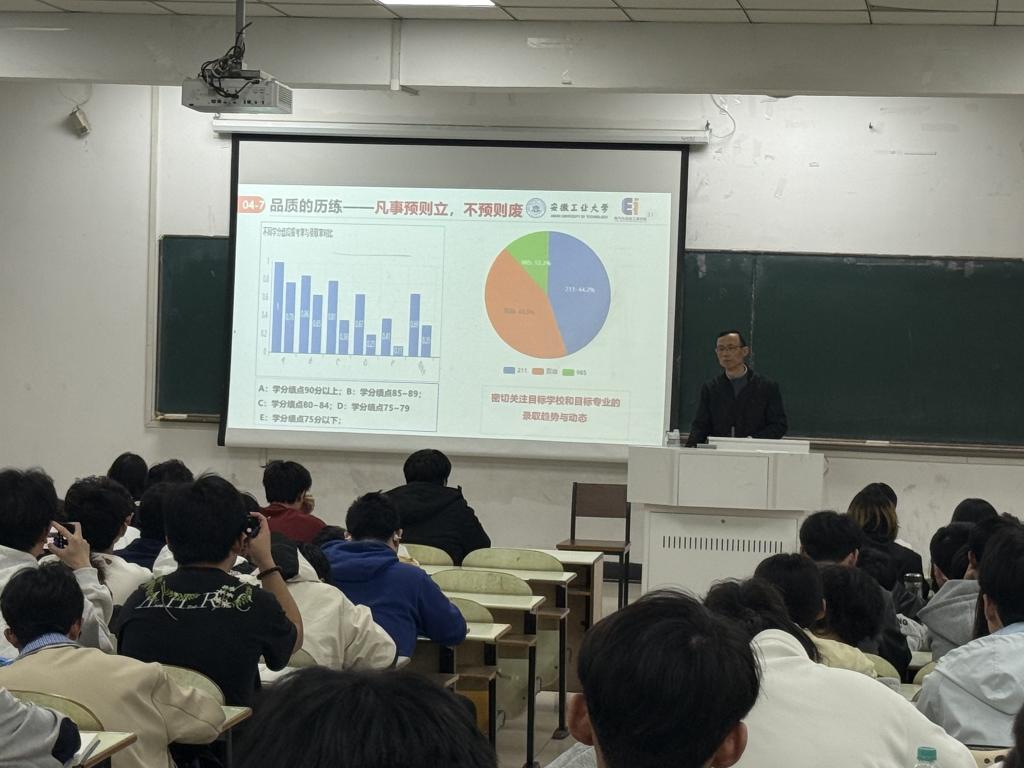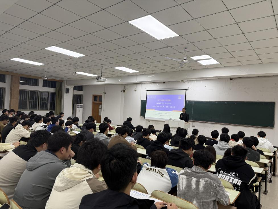 为进一步深化台湾av影片学风建设提升行动,持续帮助2025级学生明确学习目标,激发学习兴趣,增强学习动力,夯实发展基础。3月22日和29日,台湾av影片在佳山校区教三南103室举办了主题为“E起向前·E起赢未来”两场学业指导报告会,台湾av影片党委书记丁忠利进行主讲。