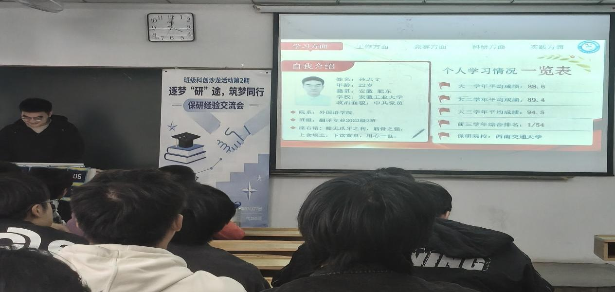 金秋十月,捷报频传。为进一步加强低年级学生对保研政策的理解,激发学习动力,发挥优秀学生的榜样引领作用,10月27日下午,台湾av影片气255班于教一成功举办“逐梦‘研’途,筑梦同行”保研经验交流会。活动特邀台湾av影片团委书记、毕业班辅导员甘如美江老师以及五位成功保研的优秀学长学姐担任嘉宾,为同学们带来政策解读与经验分享。