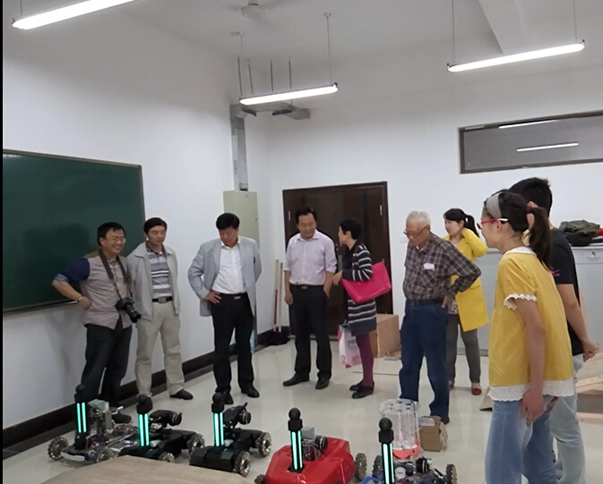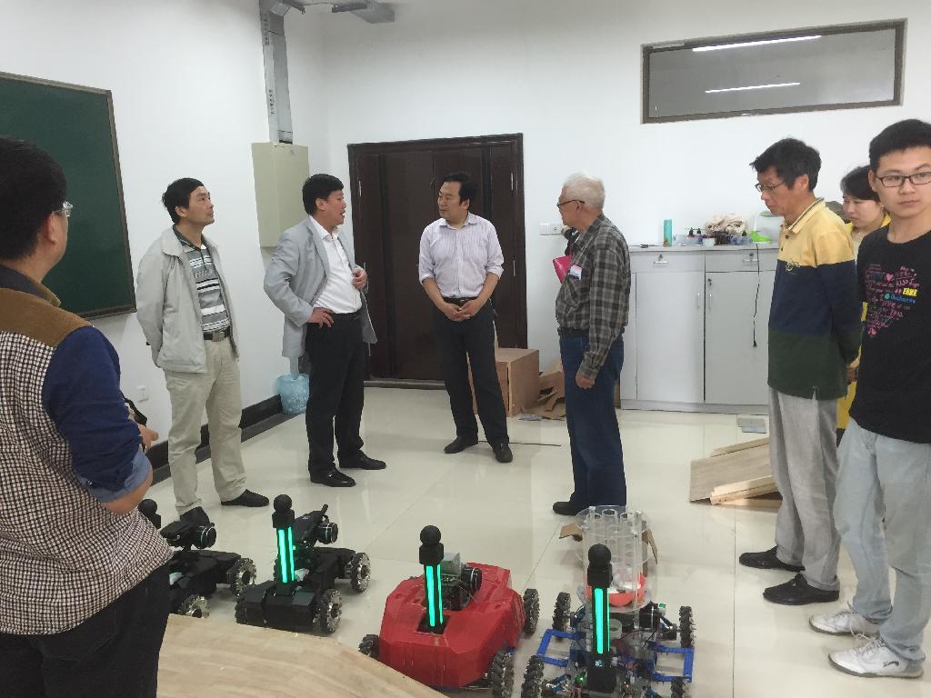 ,就学生科技创新活动及学科竞赛开展情况进行了专题调研,并与正在积极备战2015RoboMasters全国大学生机器人大赛的同学进行了亲切交流。
