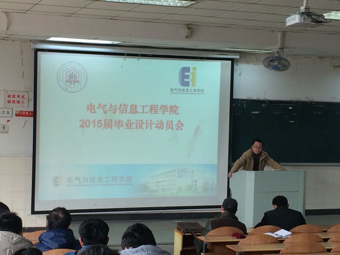 在阶101教室召开了2015届毕业生毕业设计动员大会,教学副院长聂建华、学生副院长郭宏副、毕业班辅导员和全体毕业生参加了动员大会。