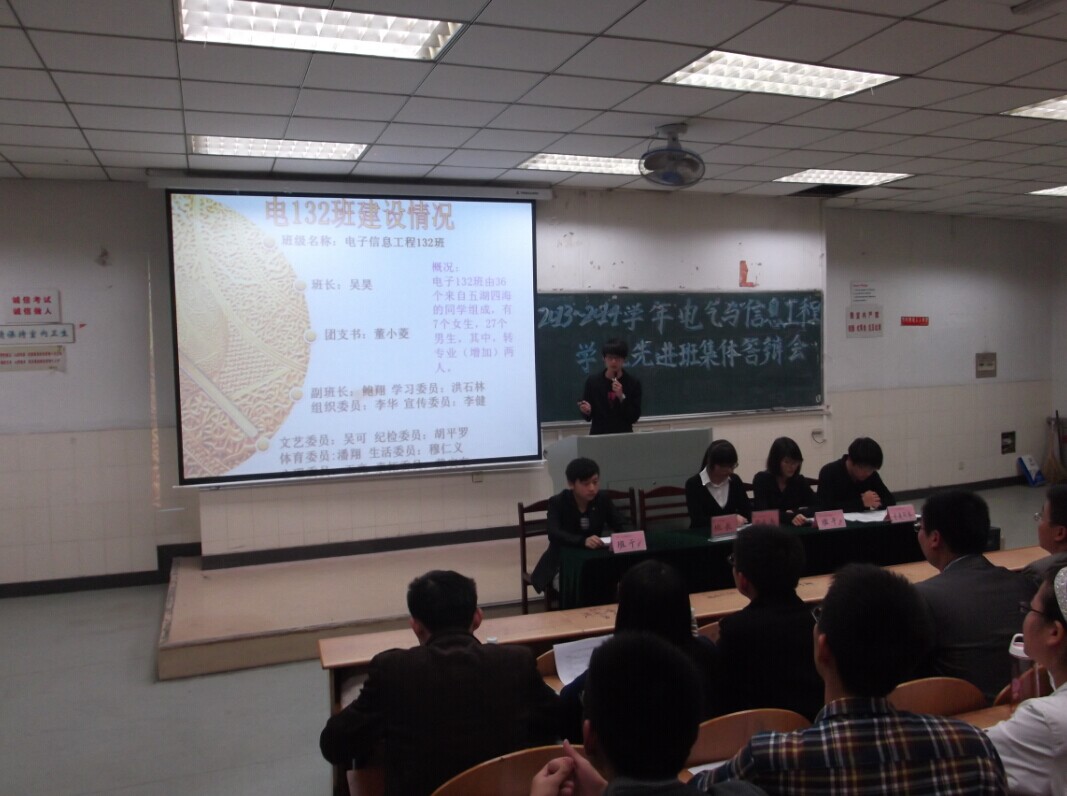 为了弘扬班级文化,展现班级风采,丰富校园生活,激励班级建设,10月16日晚,台湾av影片 在阶教201举办2013-2014年度“校先进班级”评选答辩会,台湾av影片党委副书记、副院长郭宏出席,全体辅导员和部分班主任参加,答辩班级全体同学参与,全院班长和团支书现场观摩。