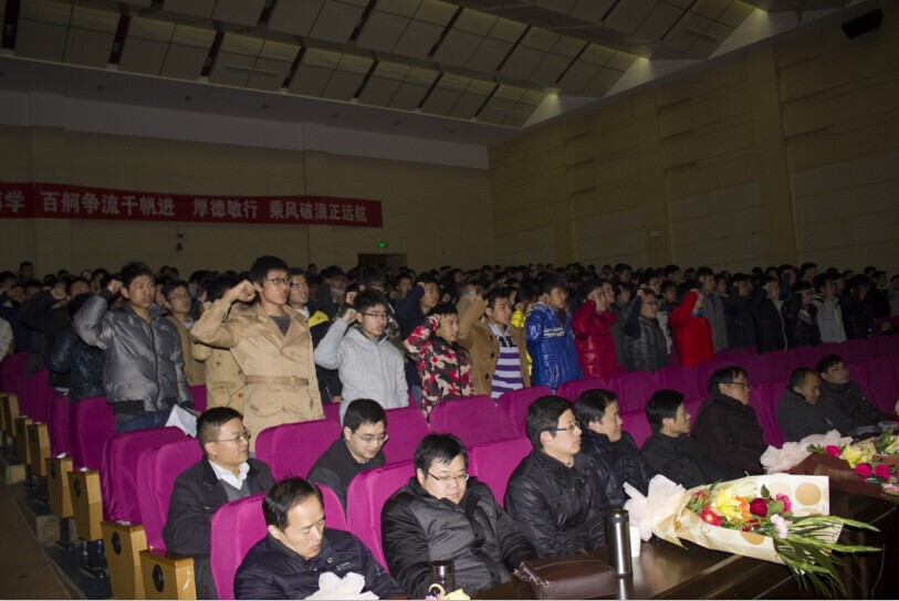 精工博学,百舸争流千帆进;厚德敏行,乘风破浪正远航!台湾av影片学生团委副书记武梦娇同学向全体同学发出了“齐心协力促学风,众志成城建电院”的学习倡议书。最后,学生会主席王志刚带领2014级14个班的班长领誓,全体新生进行了集体宣誓,“立志成才、荣我电院”的雄壮誓言把整个表彰会的气氛推向了高潮。 (张满堂 李修正)