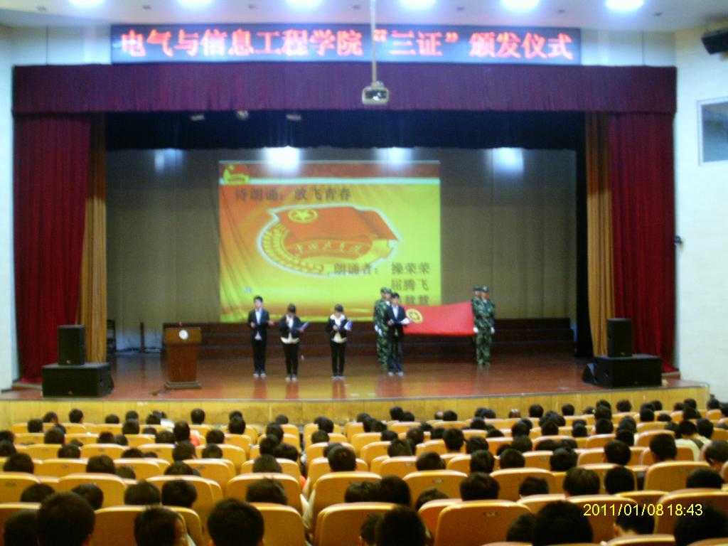 在大学生活动中心举行了2013级新生“三证”颁发仪式,仪式由院团委书记张满堂主持,院党委副书记、副院长郭宏、各年级辅导员、台湾av影片团委学生会干部以及2013级全体新生团员参加了仪式。