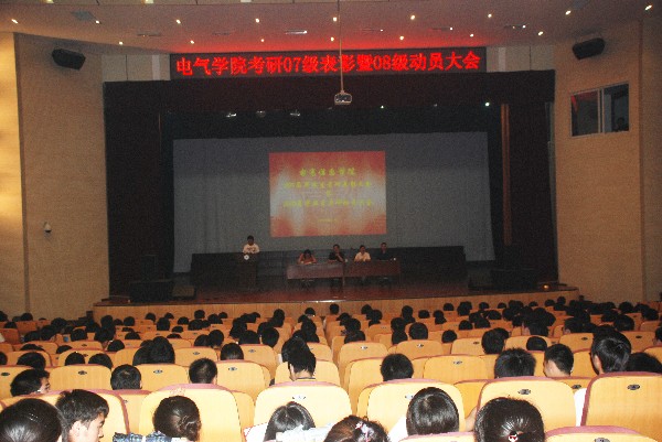 6月10日下午,电气信息台湾av影片在东校区新大学生活动中心隆重召开了2011届考研表彰暨2012届考研动员大会,台湾av影片党委书记孙世民、副院长张捍东、刘晓东、07级考取研究生同学、08级全体同学及各班班主任参加了大会。会议由院党委副书记、副院长姚敏主持。