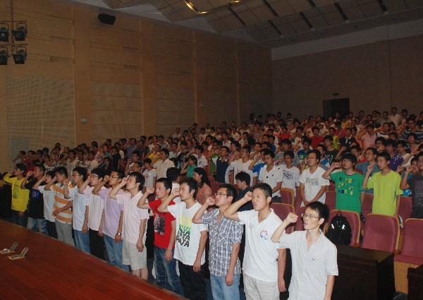 院党委书记孙世民热情洋溢的讲话将本场会议推向了高潮,他着重强调了考研的意义和重要性,鼓励08级同学们下定决心、树立信心、保持恒心,争创新的辉煌。孙世民的讲话高屋建瓴,赢得台下同学阵阵掌声。随后张捍东使用ppt从专业和技巧方面做讲授动员。会议在全体08级同学雄壮的考研誓言声中落下帷幕。
