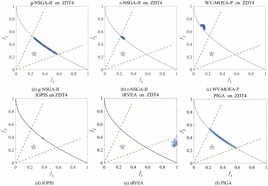 (PIGA与其他对比算法在ZDT4测试问题上的实验结果)