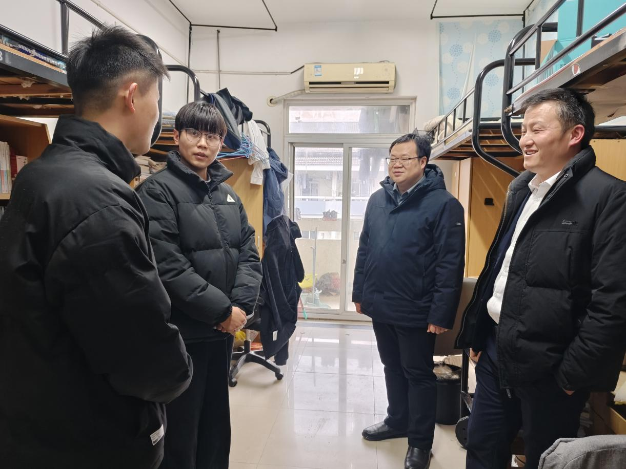 学生学习生活情况,强化学生安全意识,增进师生情感交流,12月31日下午,院副院长(主持工作)程木田、院党委副书记、纪委书记、副院长孔洋波带领全体辅导员,深入学生宿舍开展走访慰问活动。