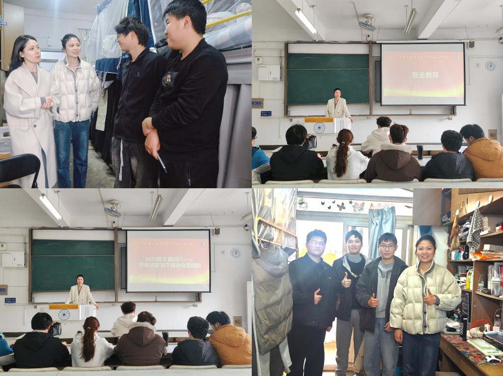 2023级辅导员组织召开了“E”路同行——“青春赋能”班干培训会第四期暨清明节前安全教育会,全体班干部参会。会议结束后,辅导员们深入课堂与宿舍,开展查课查寝工作,为学生成长成才保驾护航。