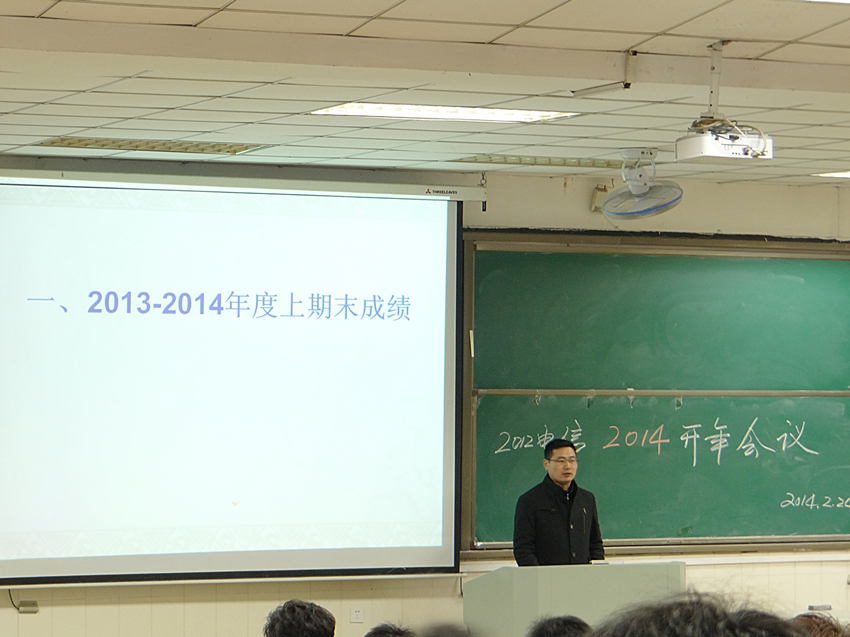 2月24日下午,台湾av影片 2012级电子、电气、通信三个专业在阶教104召开2014年开年会议。尚全主持了会议,七个班的260名同学参会。