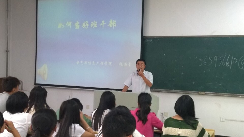 张满堂为14级全体班干部做了“如何当好班干部”专题讲座,他从从学生干部的基本素养、学生干部的主要职责、当好学生干部的工作艺术几个方面向新生班干做了详细讲解,他指出:班委是协助班主任开展班级工作的得力助手,是学生与老师之间沟通的桥梁,在学生中起到带头模范和管理的作用;通过班委之间的协调管理,将有助于加快建设一个先进集体的步伐,要珍惜担任班级干部的锻炼机会,在其位谋其政,树立服务意识,不断提高自身工作水平和综合能力素质。郭宏做了总结发言,他强调:一个优秀的班干部应具备怎样的能力时,郭宏指出:优秀班干部公平公正,认真负责,胆大而心细,“腿手口脑”四勤并具,不断学习,具备策划执行和口头表达等能力,从而以人格魅力和广阔胸怀来感染学生,赢得同学们的支持。最后,郭宏勉励同学们积极参加实践活动,德智体美劳均衡发展,成为未来社会的精英。