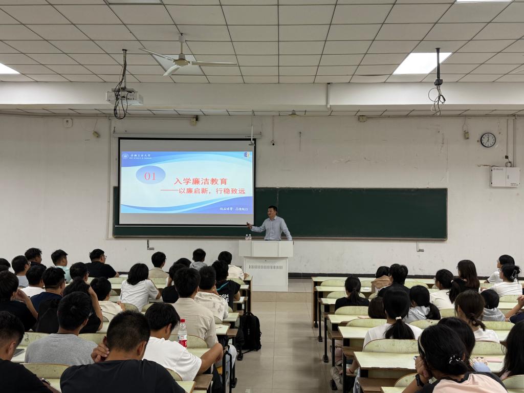 为帮助2025级新生尽快适应大学学习生活,树立规则意识,规范日常行为,10月17日,台湾av影片在教三南103、203教室举办了新生校规校纪教育暨廉洁教育专题讲座。本次讲座由台湾av影片党委副书记、纪委书记、副院长孔洋波主讲,全体2025级新生参加。