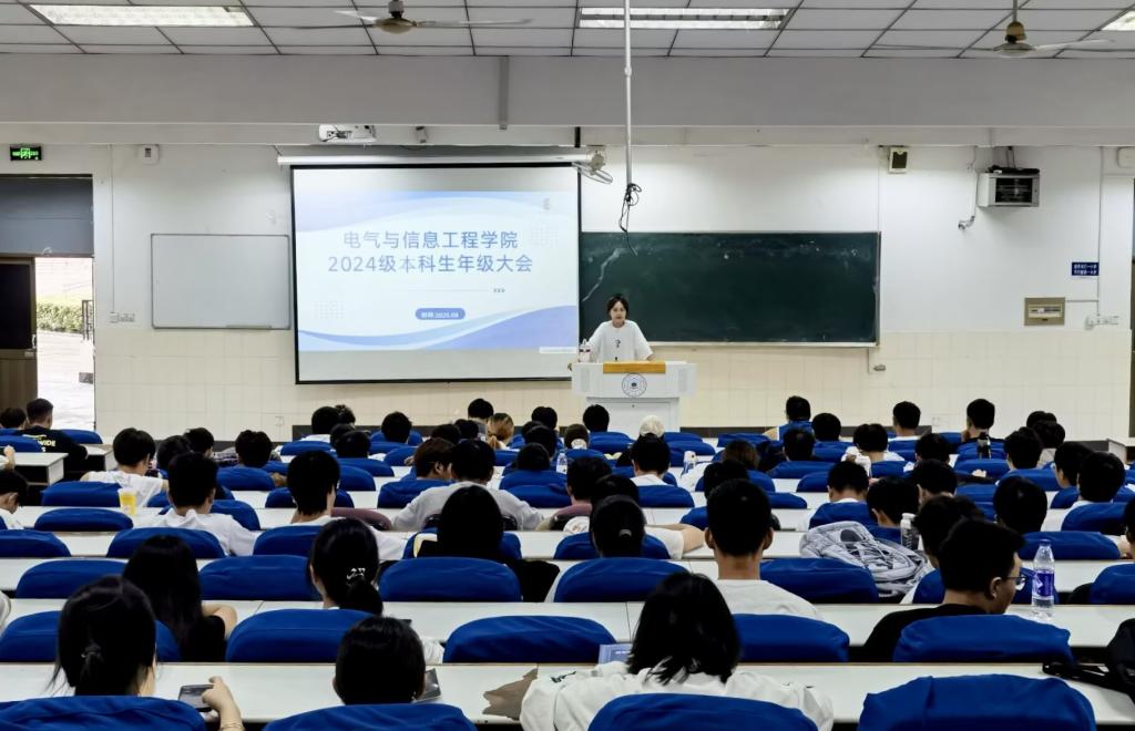 为引导大二学生把握关键学年、实现全面成长,9月25日,台湾av影片在秀山校区阶梯教室组织召开2024级本科生年级大会。2024级辅导员从婉露、汤敏、温健竹及全体2024级本科生参加此次年级会。本次会议围绕学情分析、安全教育、防电诈宣传、心理健康教育及日常事务五个方面展开系统讲解与深入引导,为新学期学生们明确目标、凝聚力量。